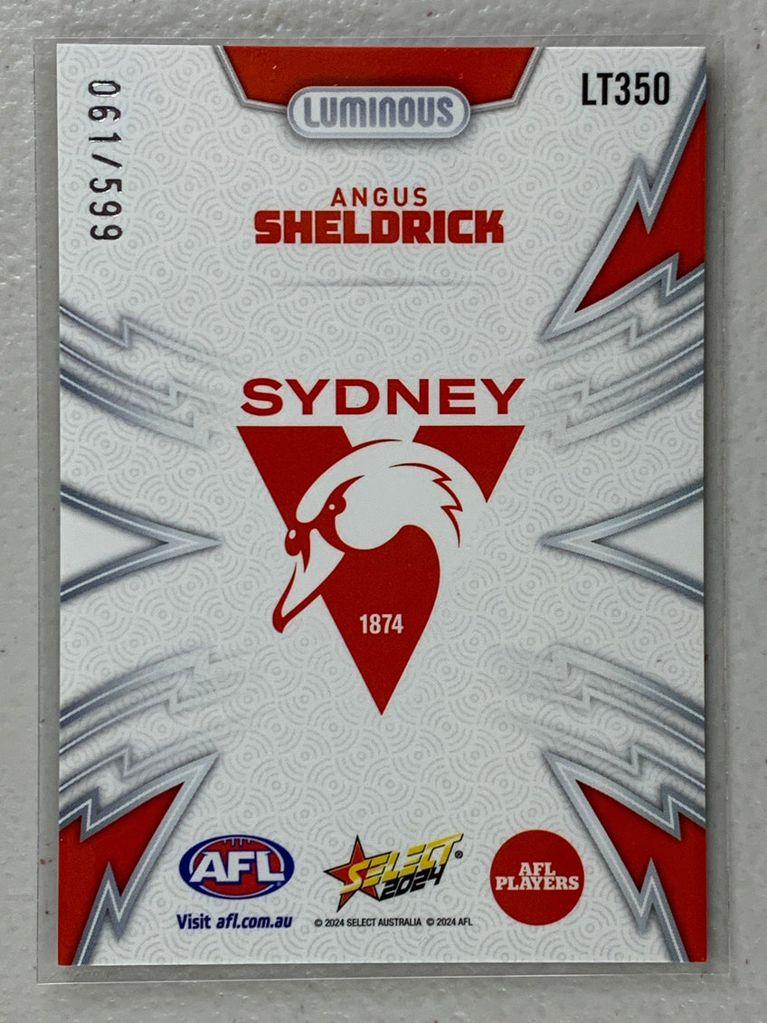 #LT350 Angus Sheldrick Numbered 061/599- Sydney Swans - Luminous Thunderbolt - 2024 AFL Footy Stars